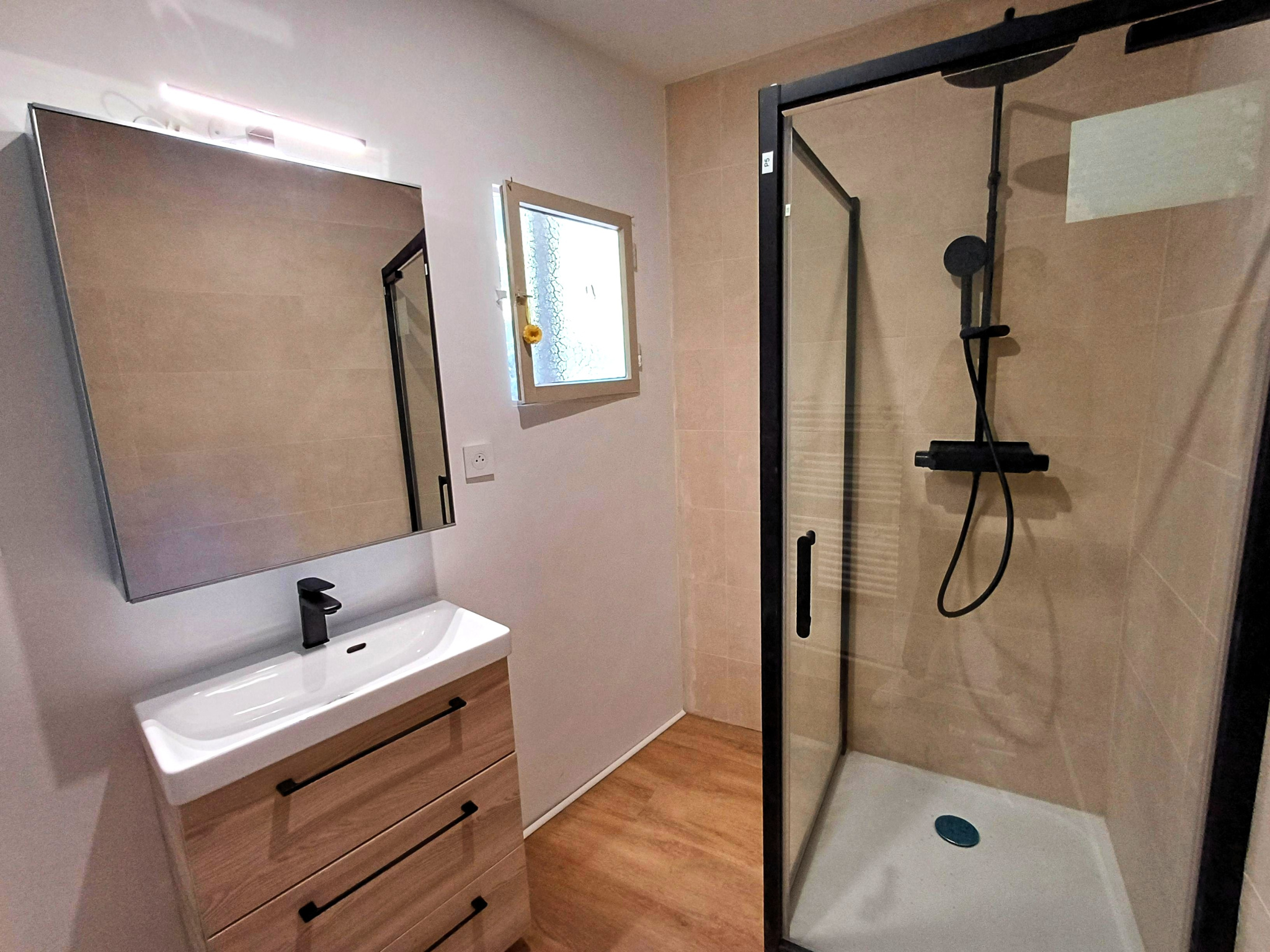 L’appartement comprend une grande chambre d’environ 19 m² ainsi qu’un espace supplémentaire pouvant faire office de bureau ou de coin nuit, idéal pour s’adapter à vos besoins. Une salle de bain d’environ 4 m² complète ce bien.