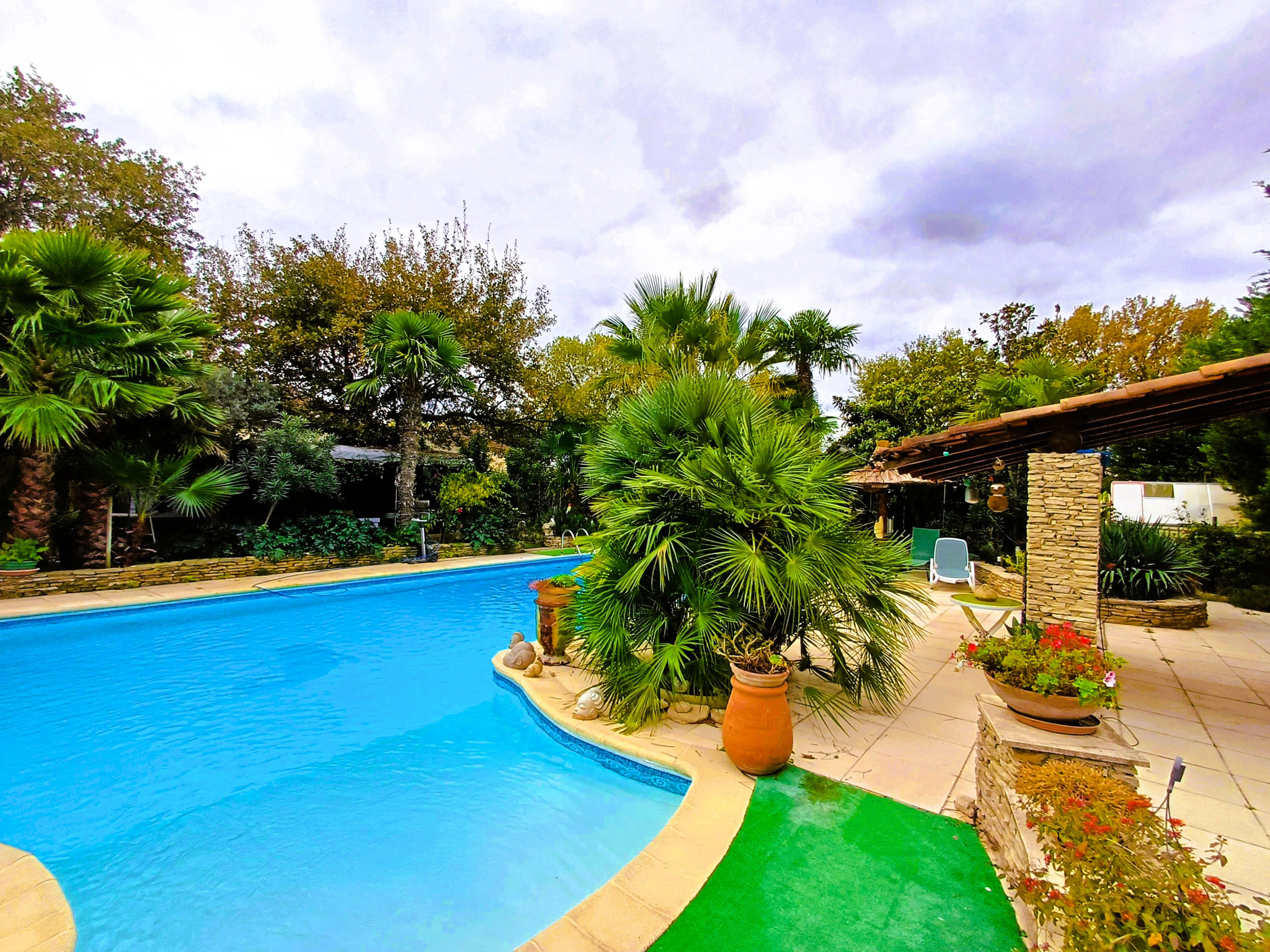 - une piscine 11 x 5,5 m avec pataugeoire, plage carrelée, liner armé, pompe à chaleur (2015),