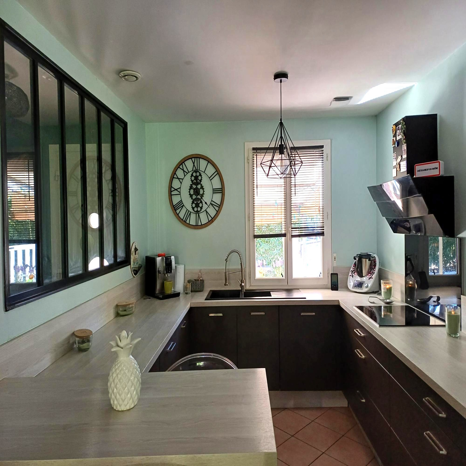 Une cuisine américaine équipée de 9 m², ouverte sur le séjour,