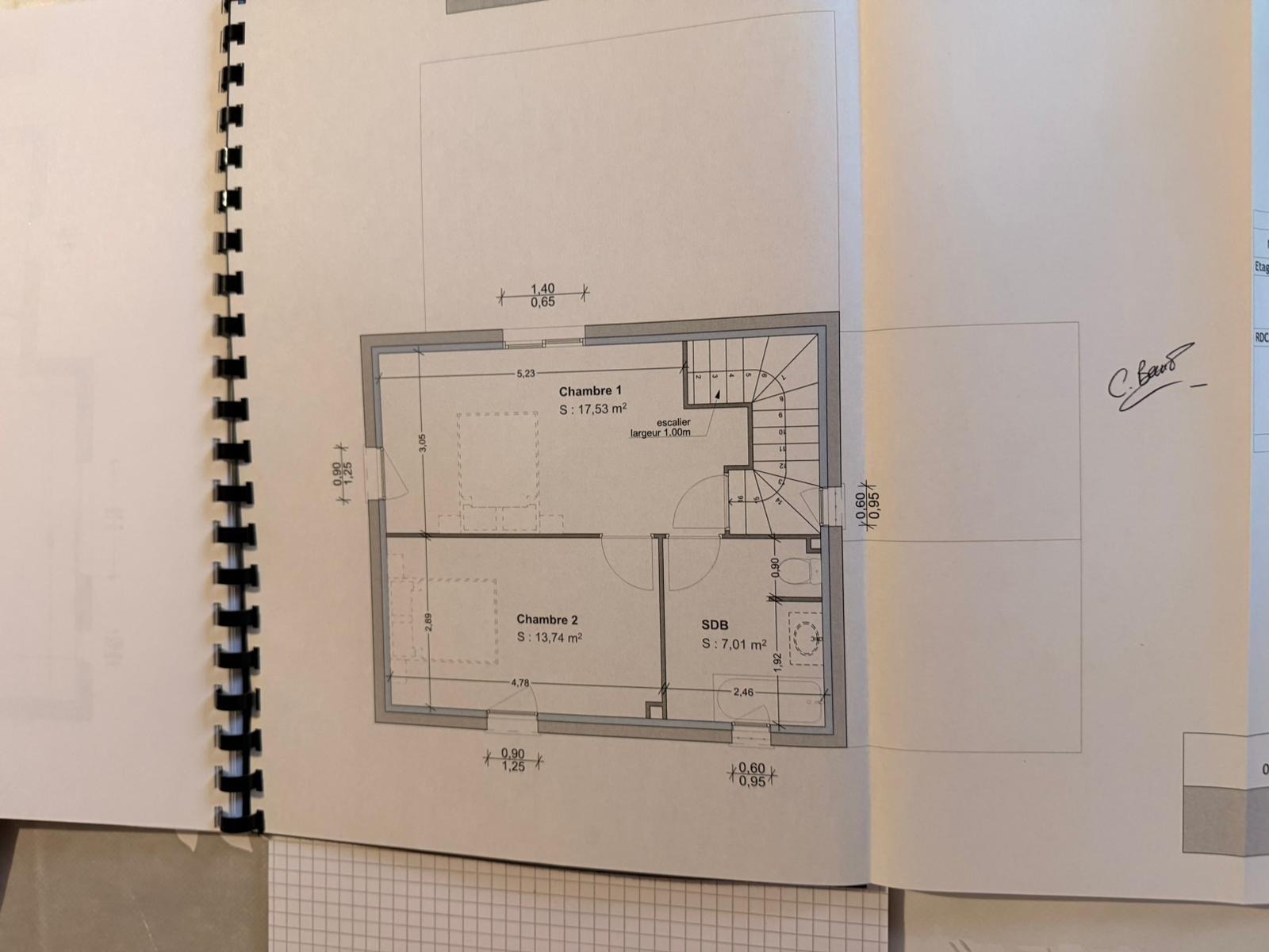 À l’étage vous trouverez 2 chambres d’environ 14 m² et 18 m² ainsi qu’une salle de bain spacieuse.